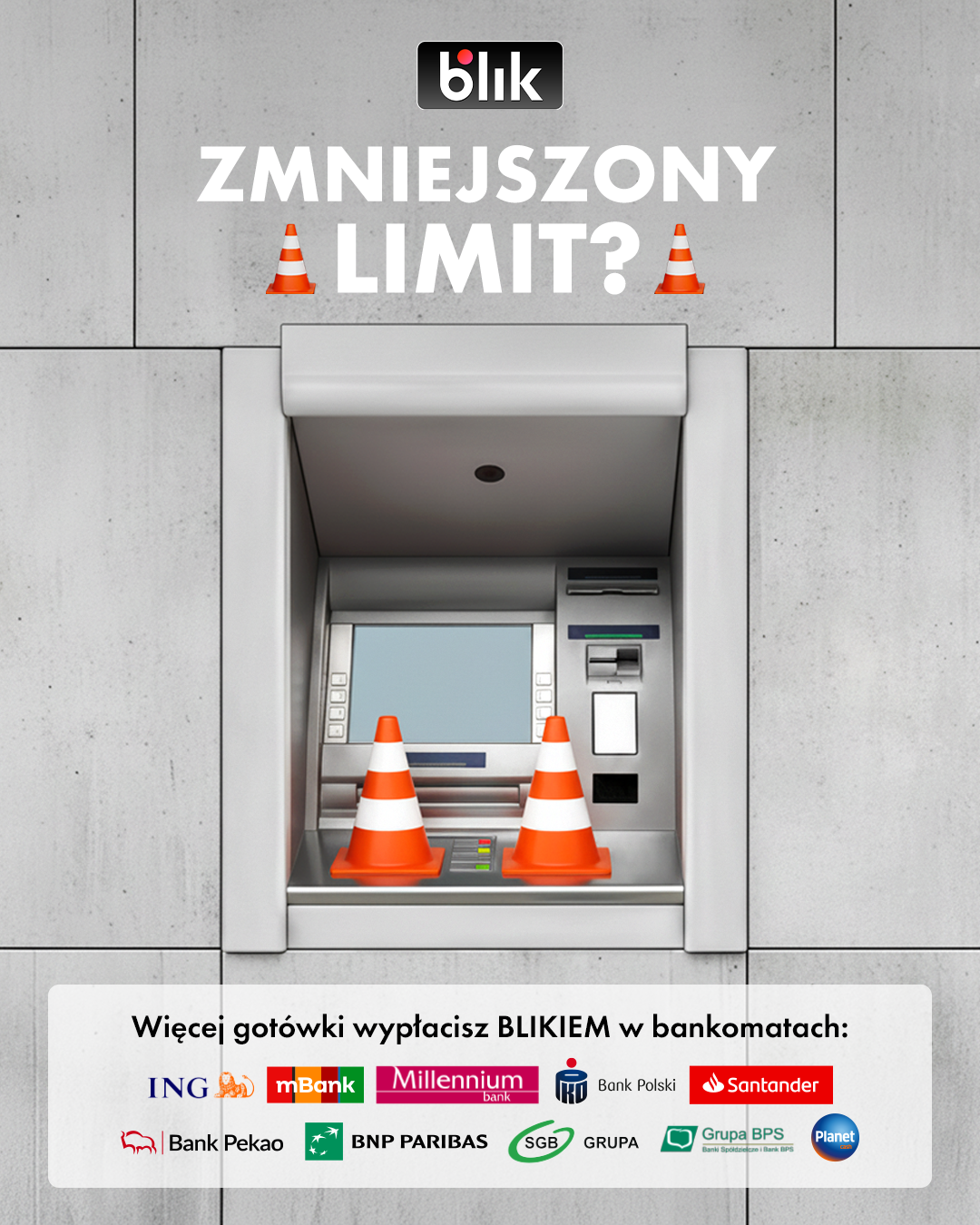 Od 19 lutego 2025 roku sieć Euronet wprowadziła limit 200 zł dla pojedynczej wypłaty gotówki BLIKIEM w swoich urządzeniach. Zmiana dotyczy wyłącznie tej sieci i nie wpływa na dostępność wypłat w pozostałych bankomatach w Polsce. Użytkownicy BLIKA mogą nadal swobodnie korzystać z ponad 13 000 bankomatów działających w sieciach największych banków oraz innych operatorów, gdzie obowiązują standardowe limity transakcyjne.